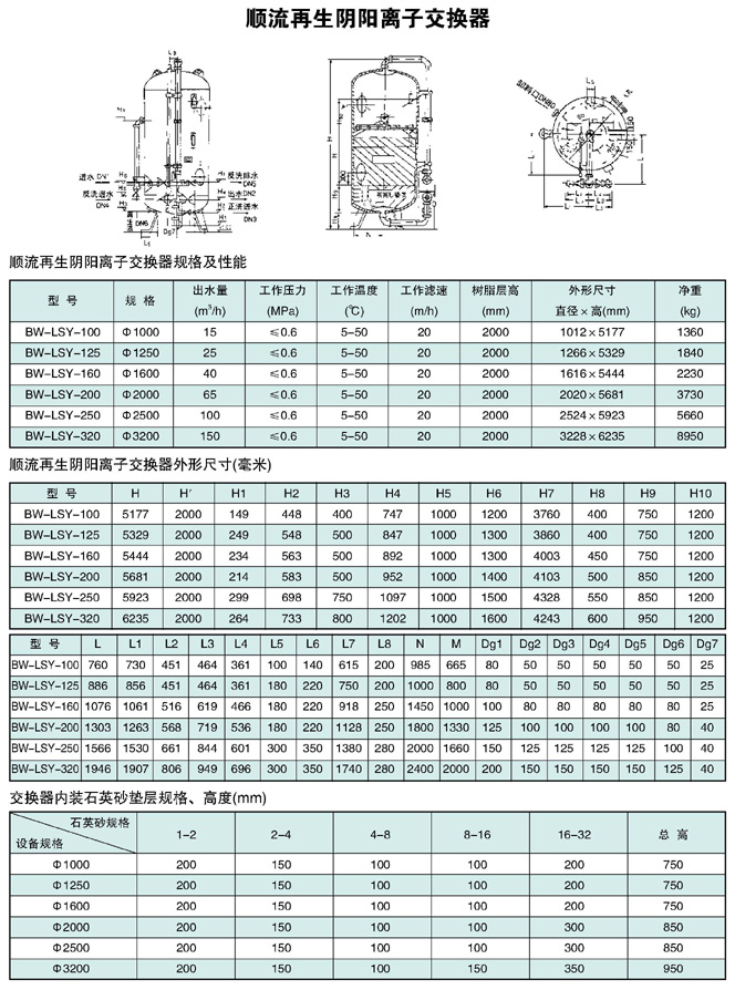 顺流再生阴阳离子交换器