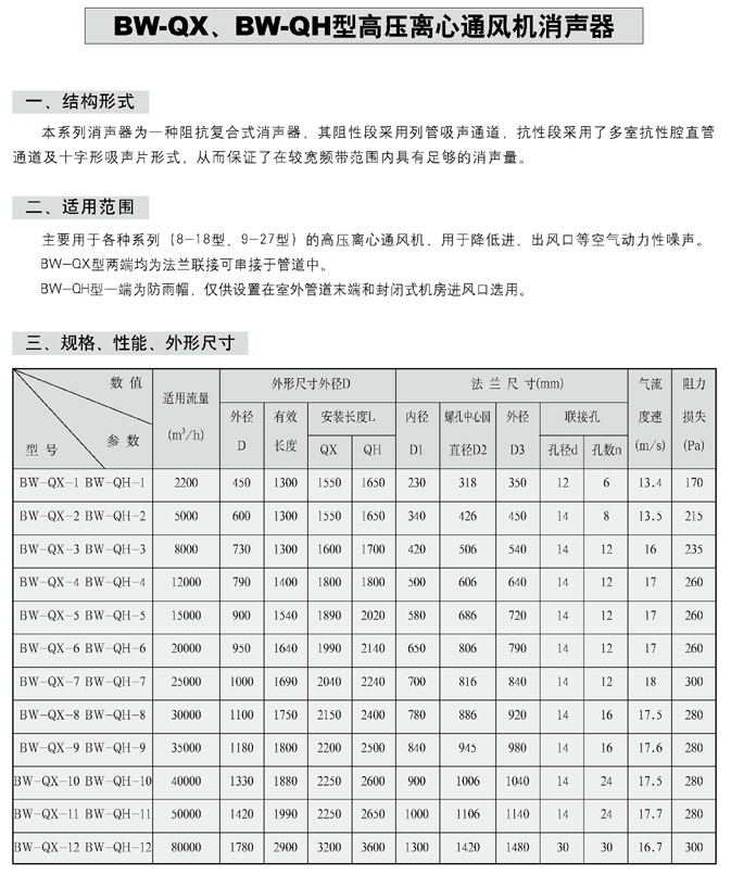 BW-QX、QH型高压离心通风机消声器